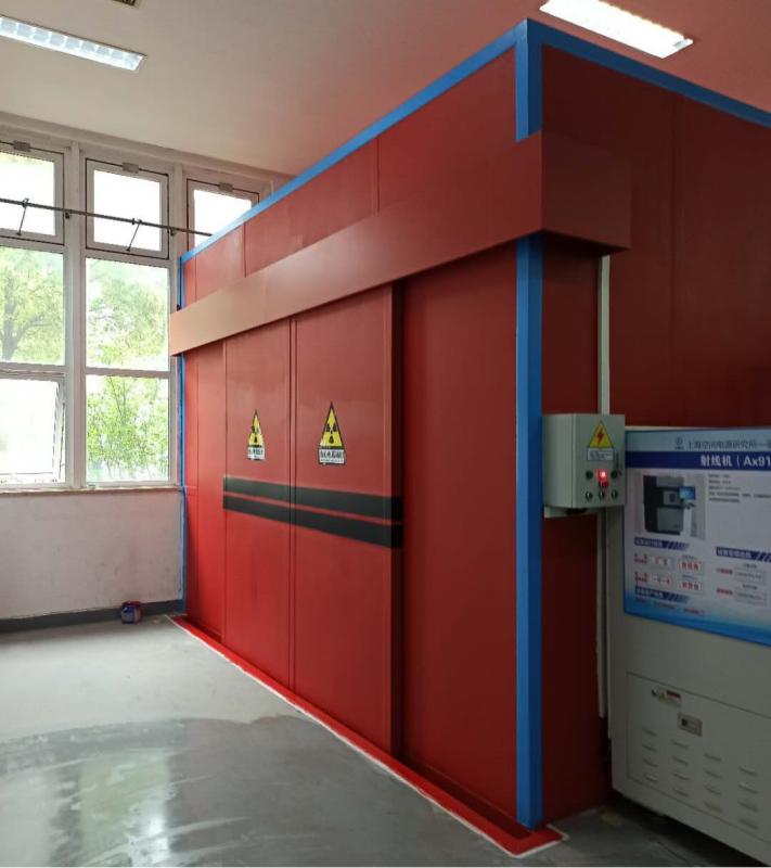 c) 信号警示装置。在控制区出入口处及内部应设置灯光和音响警示信号,用于开机前对屏蔽室内人员的警示。屏蔽室出入口设置工作状态指示装置,并与射线装置联锁;